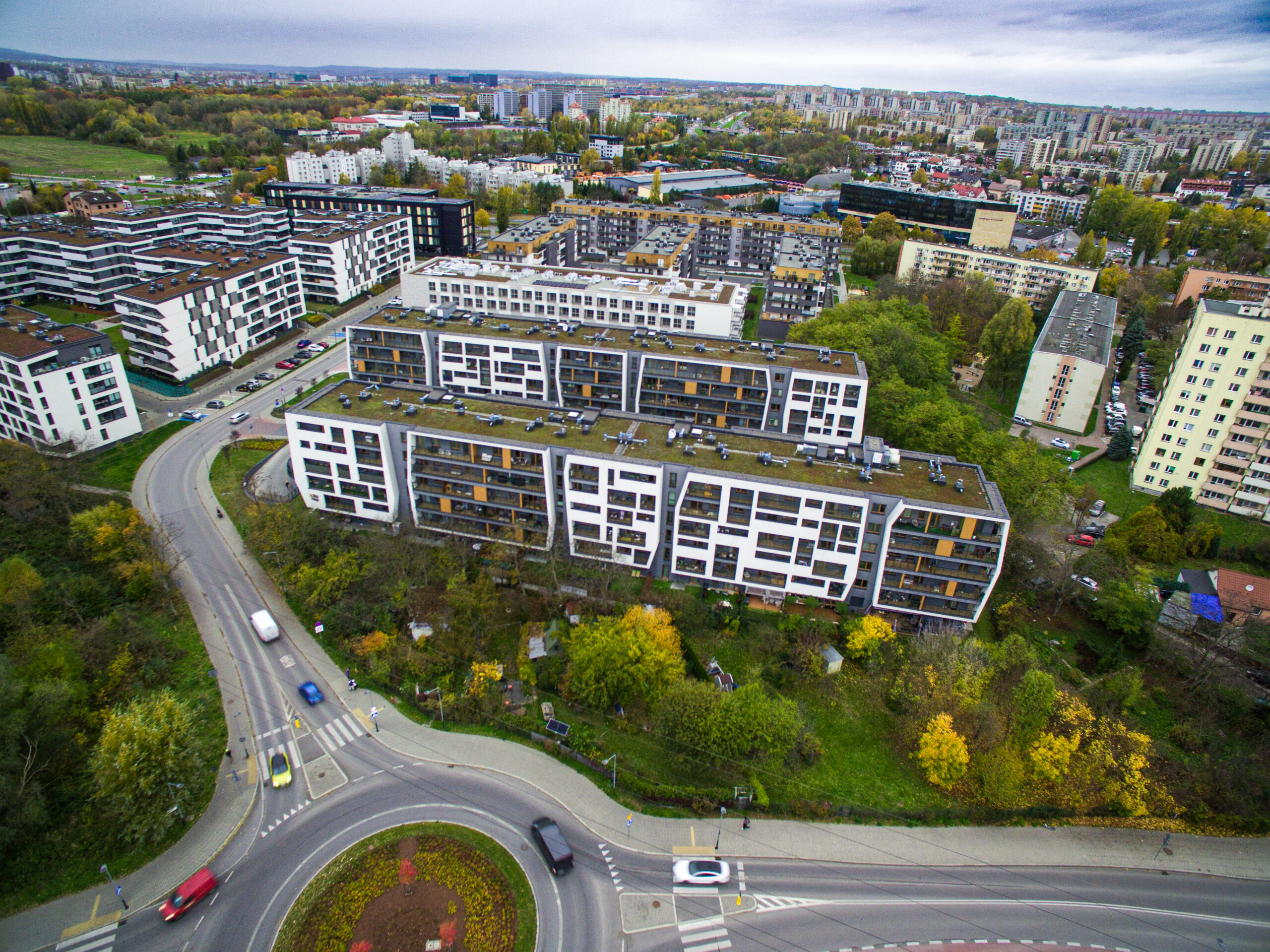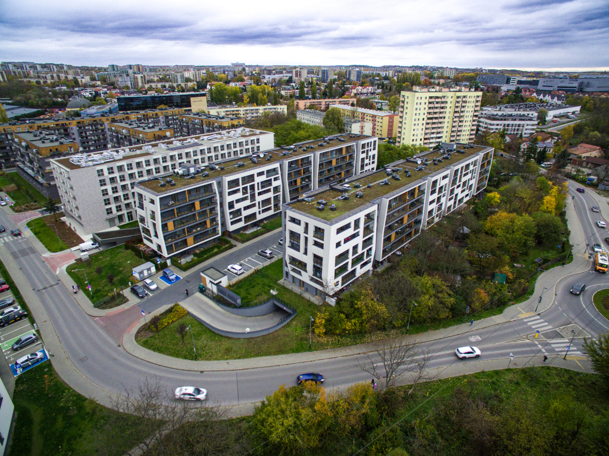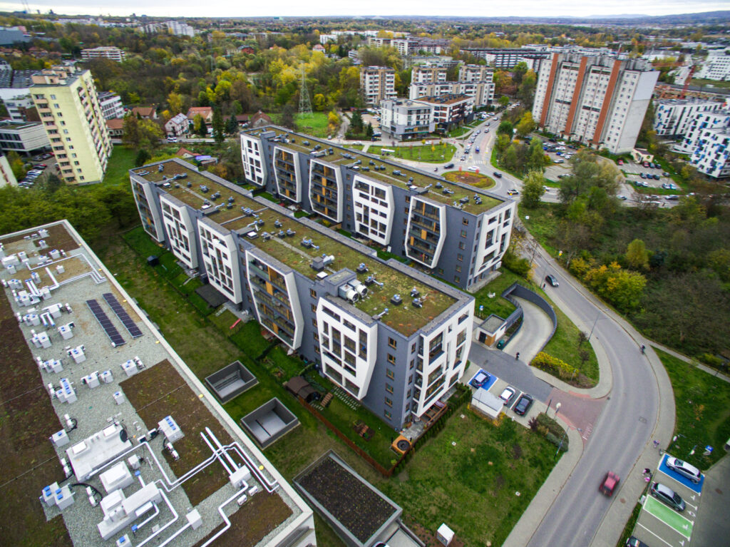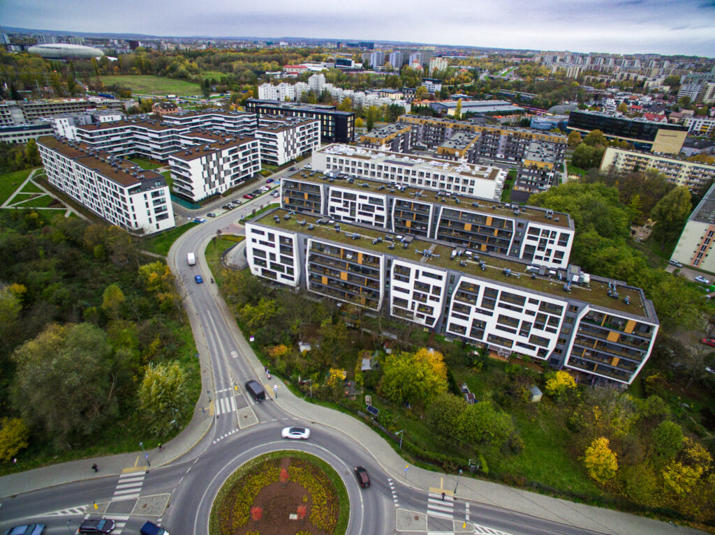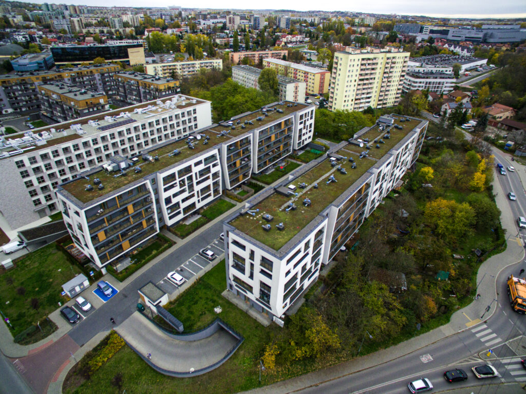 Kompleksowe wykonanie stanu surowego otwartego budynku mieszkalnego wielorodzinnego z garażem podziemnym przy al. Pokoju w Krakowie.