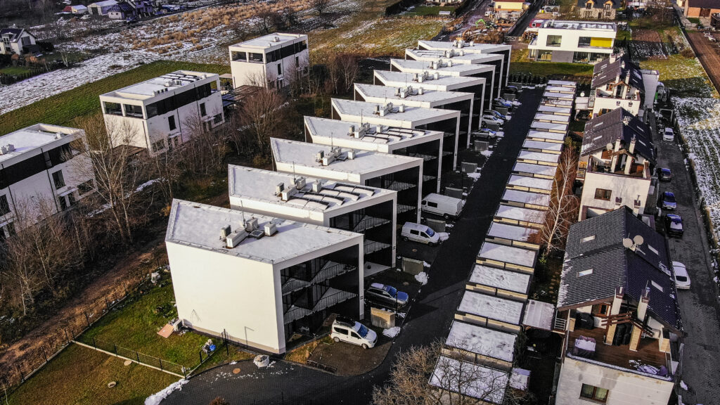 Kompleksowe wykonanie stanu surowego dziesięciu budynków mieszkalnych jednorodzinnych dwulokalowych, dwudziestu garaży wolnostojących, zamkniętych, jednostanowiskowych oraz zadaszone miejsce do gromadzenia odpadów stałych przy ul. Gryczanej